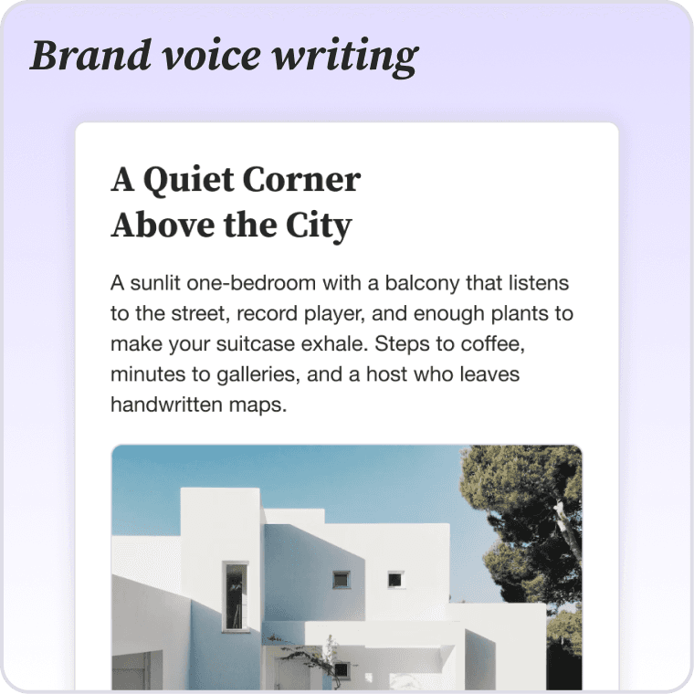 Create smarter, faster, and more consistently with an AI engine that understands your brand, your audience, and your goals.