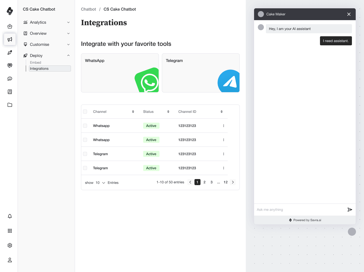 Deploy your chatbot across WhatsApp, Telegram, and more with just a few clicks. Engage users on their preferred messaging platforms and keep conversations seamless across channels.